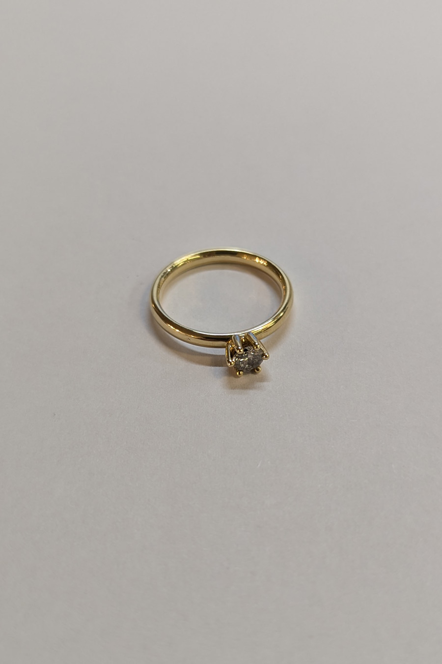 Ein klassischer Solitärring mit Salt 'n' Pepper Diamant. Der Ring lässt sich nahtlos mit anderen Ringen kombinieren. Dieser Ring wurde von uns für dich aus recyceltem Gold gefertigt.